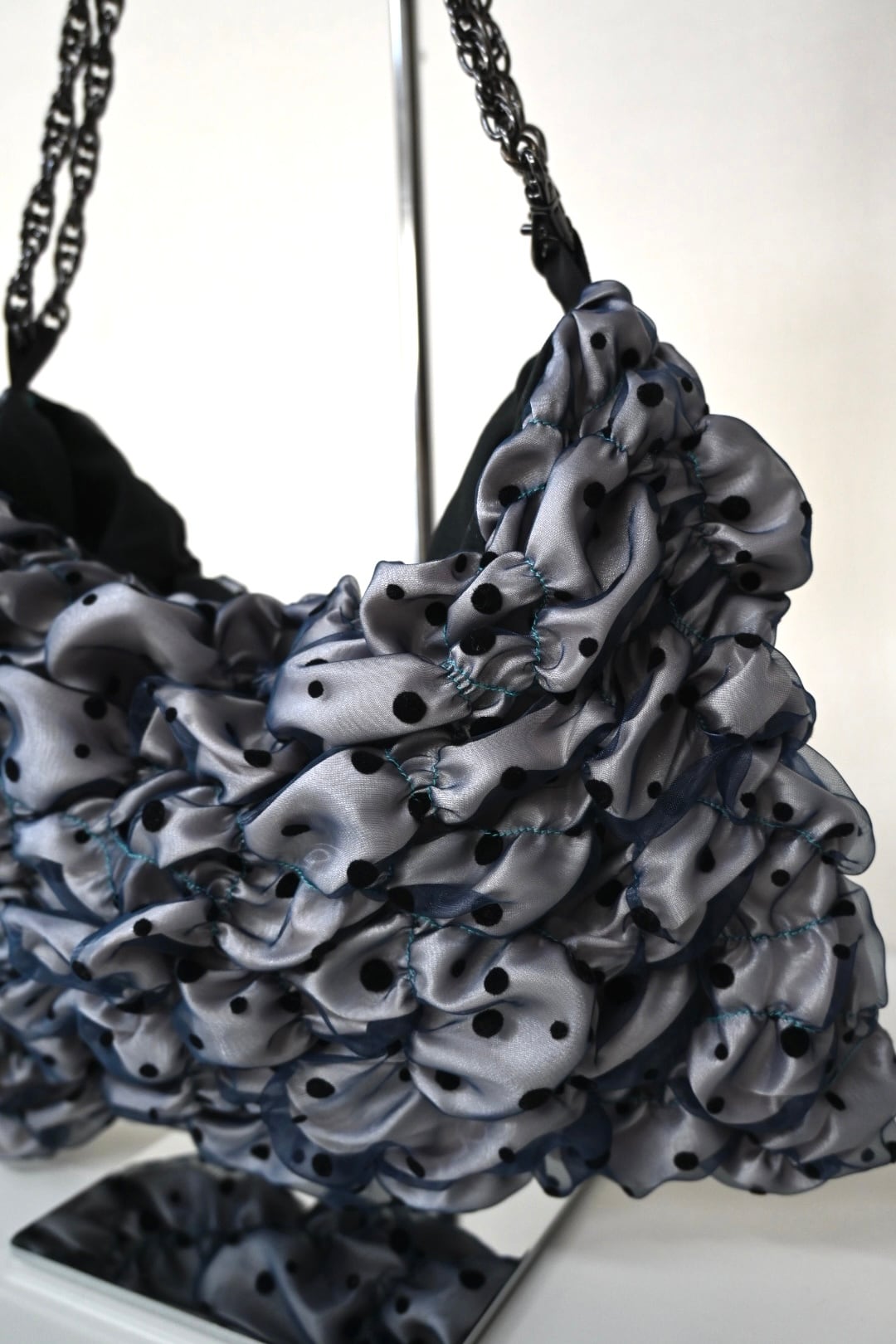オーガンジーにフロッキー素材のドットが入った生地を使用しています。